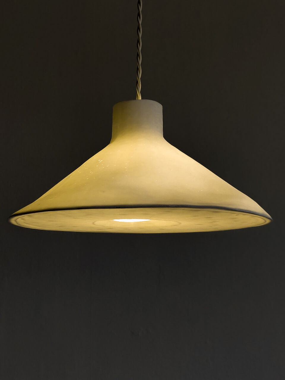 ![]() | Horn lamp Bone china porcelain, fabric cable, including a matching ceiling cap Medium: 16 cm in height, diameter of 31 cm | Price: € 450,- |